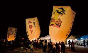 มีจัดขึ้นทุกปีเป็นประเพณีที่มีมาตั้งแต่สมัยโบราณโน่นแหนะค่ะ และชาวเมือง เค้าก็สืบทอดประเพณีนี้มาอย่างยาวนาน ทุกวันที่ 10 กุมภาพันธ์ ในคืนเดือนมืดนี้ผู้คนก็จะพากันนำบอลลูนกระดาษที่มีขนาดใหญ่ประมาณ 8 เมตร บนบอลลูนก็จะวาดรูปผู้หญิงญี่ปุ่นสมัยโบราณหรือซามูไรผู้กล้าหาญ พร้อมกับเขียนคำขอพรลงไปบนบอลลูนแล้วอธิษฐาน และขอเราให้ไปถึงงานก่อน 17:00 น. ค่ะ เพราะว่า 18:00 น. ก็จะปล่อยบอลลูนกันแล้ว ท้องฟ้าก็จะสว่างสไวไปด้วยแสงไฟจากบอลลูนนับพันเลยล่ะค่ะ เป็นภาพที่สวยงามห้ามพลาดเลย